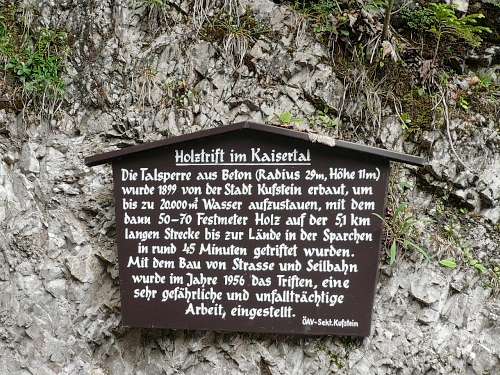 Bis zur Hälfte des 20. Jahrhunderts war der Kaiserbach bedeutend für die Forst- und Holzwirtschaft. Denn es wurde die sogenannte Holztrift betrieben. An einigen Talsperren wurden bis zu 20.000 Kubikmeter Wasser aufgestaut, und dann wurden bei dem schnellen Öffnen der Sperre bis zu 70 Ster (Festmeter) Holz in 45 Minuten bis fast nach Kufstein getriftet. Man kann sich gut vorstellen, dass diese Arbeit früher sehr gefährlich war.