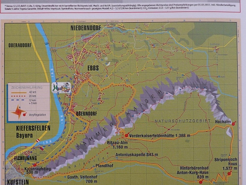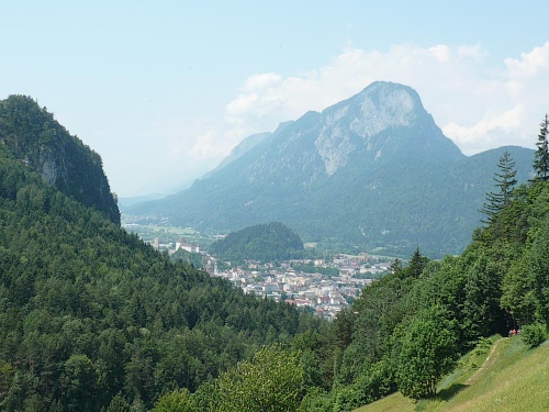 Kufstein mit seiner Festung kommt immer mehr ins Blickfeld. Aber ein Schauen geht nur beim Stehen, denn der Abstieg bei Eichelwang ist steil. 17000 Einwohner zählt heute das Städtchen, die Perle Tirols, die im Kufsteinlied besungen wird. Wer kennt die Melodie nicht.