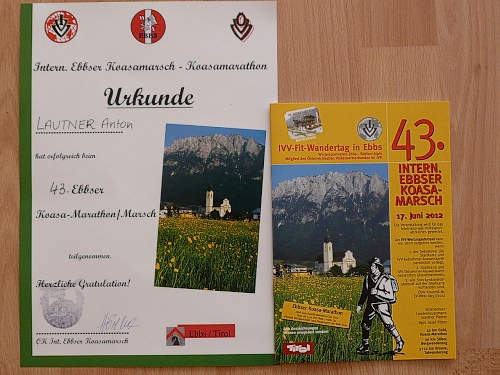 Im Zielbereich wird die Karte eingescannt und wer will, dem wird seine persönliche Lauf- und Marschzeit auf die Startkarte geschrieben. 6.10 Stunden zählt meine kombinierte Wander- und Joggingtour. Wer die Berge um Kufstein ebenfalls erwandern oder erlaufen will, der nächste Termin steht schon fest: 16.06.2013. Der Wintersportverein lädt heute schon ein. Na wie wär's?