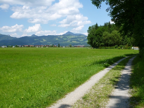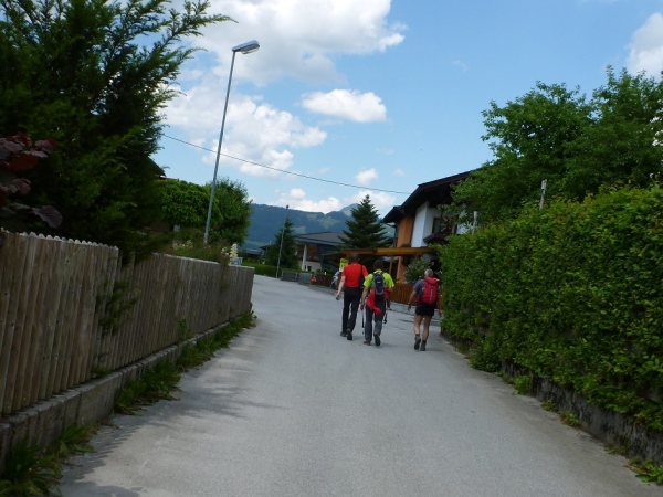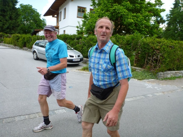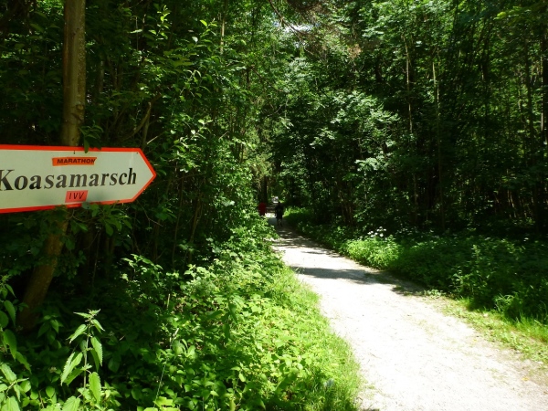 Zuerst recht schattig führt der Kurs am Kaiserwald entlang, dann laufen wir durch Oberndorf und Ebbs der Schule entgegen. Mein Freund Franz Steichele muss sich noch langmachen, damit ich ihn nicht auf den letzten fünf Metern vor der Schule überhole. Er ging als dritter Wanderer in der Früh um Fünf auf die Strecke, ich war der Vorletzte.