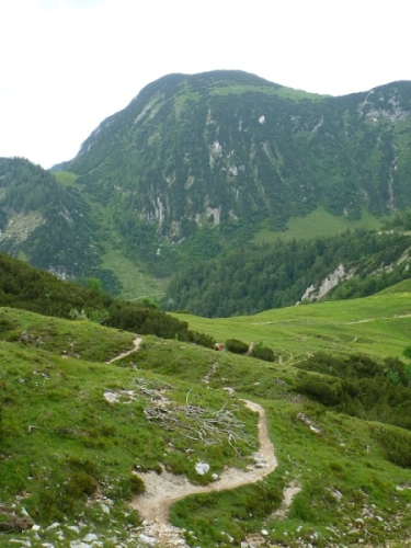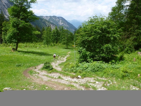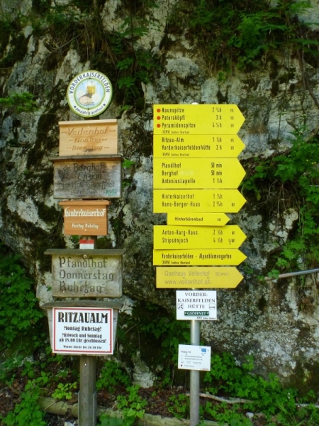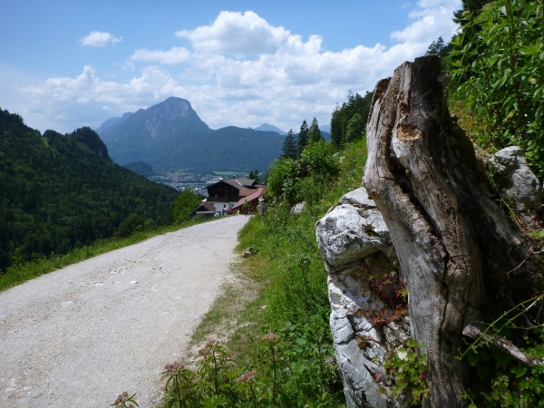 Das Kaisertal trennt den Zahmen vom Wilden Kaiser und fällt Richtung Westen zum Inn und Kufstein hin ab. Erst vor wenigen Jahren wurde das Tal mit einer Straße erschlossen. Bis dahin war die Versorgung der Gäste und Einwohner umständlich. 285 Stufen zählte der am häufigsten benutzte Zugang bei Eichelwang. Den werde ich noch bei meinem langsamen Läufchen besichtigen. Laufen geht nun wieder, da der Weg besser und breiter geworden ist.