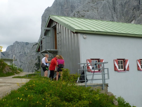 Das Stripsenjochhaus liegt in direkter Nähe zum Stripsenjoch, das ist der Übergang vom Kaisertal zum Kaiserbachtal. Kletterer und Wanderer haben hier eine zentrale Stelle für ihre Unternehmungen. Die Hütte war in der vergangenen Nacht proppenvoll, die Bergfexe zieht es wieder in die Höhe. Der Kraxler macht seine Ausflüge gerne zur Ellmauer Halt (2344 Meter) oder zur Fleischbank, den trittsicheren Wanderer zur Steinernen Rinne und zum Ellmauer Tor.