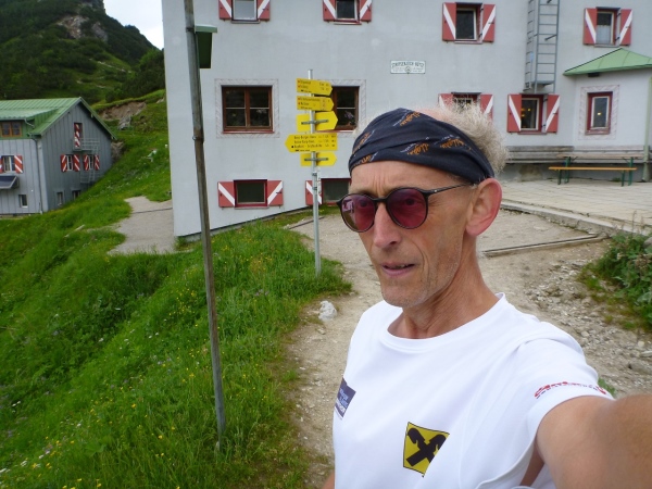 An einem Gefälle mit kleinem Geröll habe ich das Tempo herausgenommen. Aber zuerst zieht es mit den rechten, dann den linken Fuß weg und ich hocke auf den Allerwertesten. Ein paar Quadratzentimeter Haut bleiben dadurch auch auf der Strecke. So funktioniert also eine Backenbremse. Wenigstens hat's keiner gesehen. Das nächste Mal prüfe ich vorher das Profil meiner Schuhe. Trailschuhe sind keine schlechte Wahl.