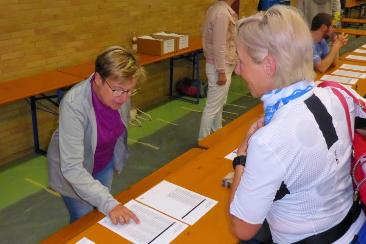 Der Samstag ist für Nordic Walking und 5 km Freizeitlauf reserviert. Am späten Nachmittag kann man bei der Pasta Party seine Kohlehydratspeicher auffüllen. Der Sonntag beginnt um 8 Uhr 30 mit dem Marathon. Wir haben es nicht weit. Daher reisen wir erst am Sonntag an. So früh ist Parken kein Problem. Die Ausgabe der Startunterlagen in der Sporthalle erfolgt ebenfalls zügig. Wer rechtzeitig anmeldet, bekommt zu seinem Starterbeutel sogar noch ein Funktionsshirt.