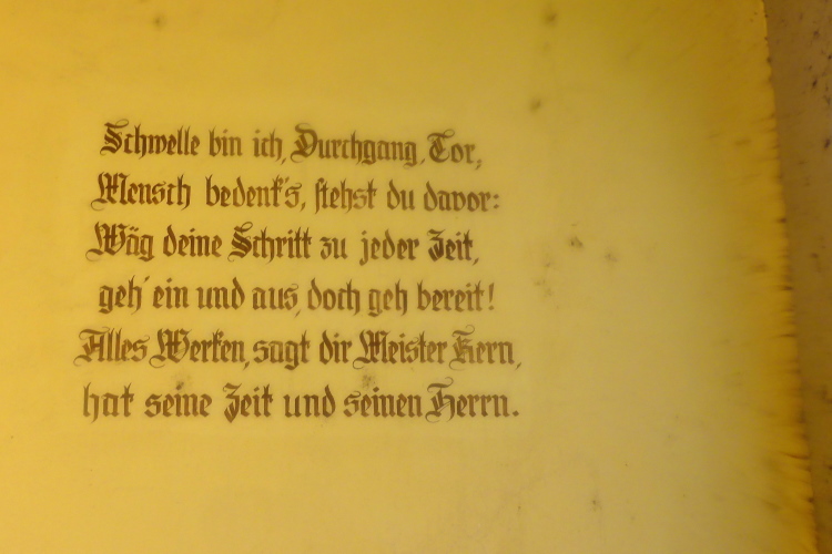 Wieder bergauf gelangen wir zu einem Hofgut mitten im Weinberg, und weiter bergab zur nächsten VP oberhalb des Ingelfinger Fasses. Das zweitgrößte Holzfass in Europa ist ein Weinbaumuseum mit Exponaten rund um den Weinbau, die durch Schaufenster von außen besichtigt werden können.