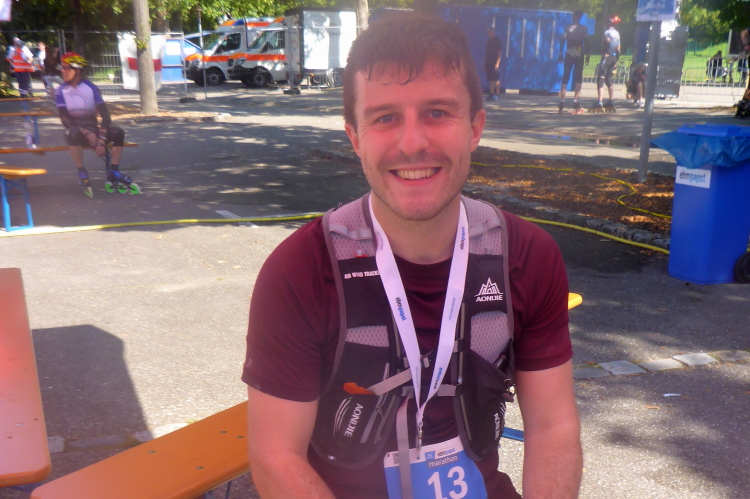 Im großzügigen Zielbereich ist es mittlerweile übersichtlich. Trotzdem ist das Angebot vollständig: Es gibt Erdinger alkoholfrei, Obst und sogar Müsli. Die kühlende Dusche lassen wir lieber aus. Bierbänke unter Sonnen/Regenschirmen laden zum Verweilen ein - was will man mehr?