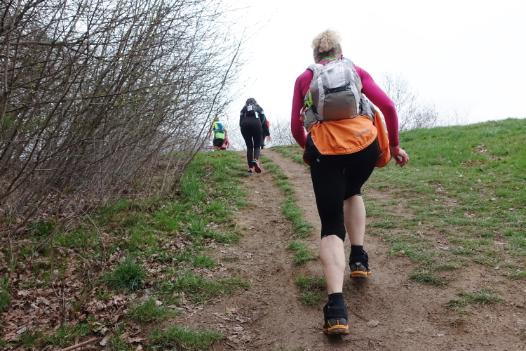 Weiter, es wird ja jetzt einfacher, meint Angelika. Leider kann ich ihr da nicht zustimmen. Laut meiner Marschtabelle kommt die nächste Verpflegungsstelle zwar nach knapp 11 Kilometern, aber es liegen auch fünf Anstiege mit 280 Höhenmetern dazwischen.