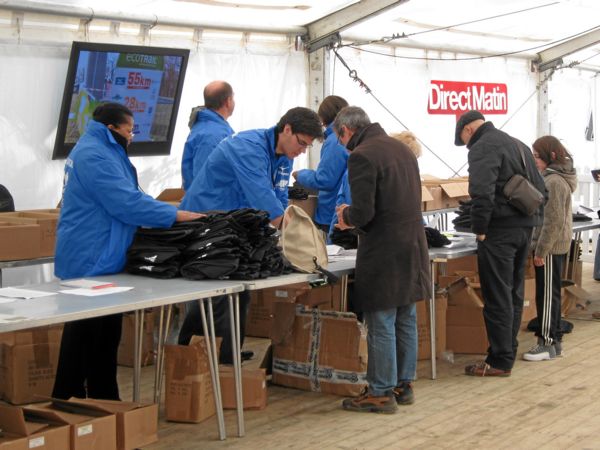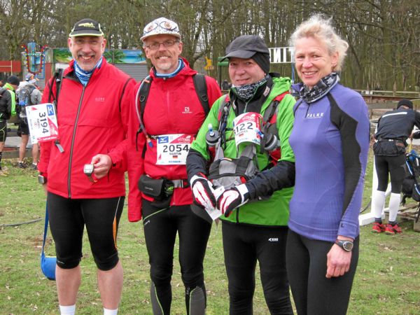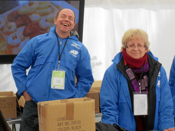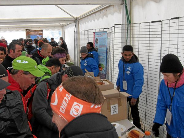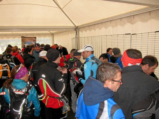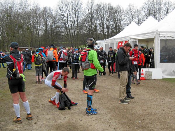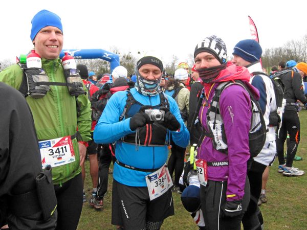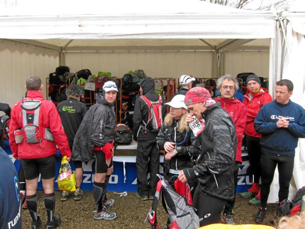 Es war zugig und kalt, vielleicht 4-5 Grad, alles drängelte in das Verpflegungszelt, wo Kaffee, Tee, Wasser und Kuchen angeboten wurden. Für die insgesamt 1.600 Teilnehmer aber war das Zelt natürlich viel zu klein, also hieß es bald Platz machen und sich draußen die restliche Zeit bis zum Start zu vertreiben.