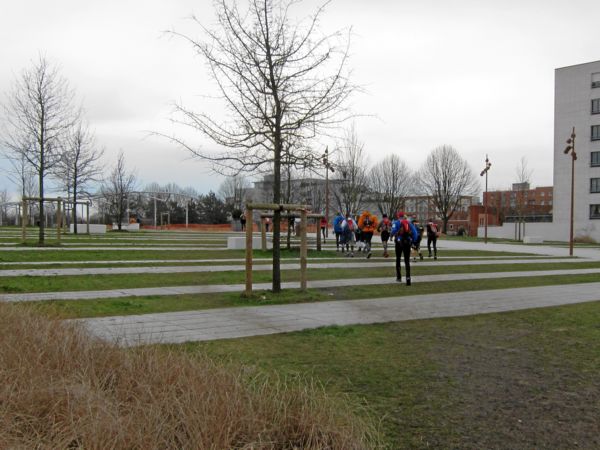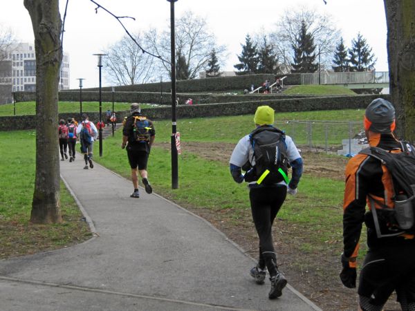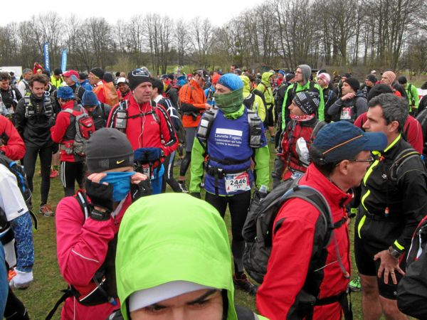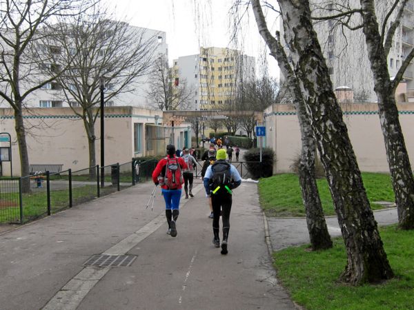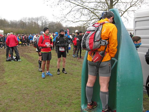 Am Samstagmorgen gegen 10 Uhr ging es mit der Bahn (RER) zum Start. Die Teilnehmer am 50-km-Trail verließen an der Station Versailles die Metro, wir fuhren weiter bis „Saint-Quentin-en-Yvelines“ und von dort mit Bussen des Veranstalters die paar Kilometer zum Start auf der dortigen Freizeitanlage.
