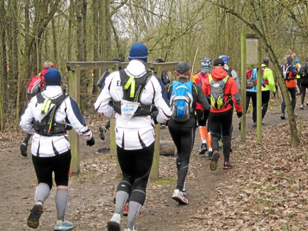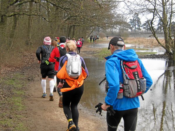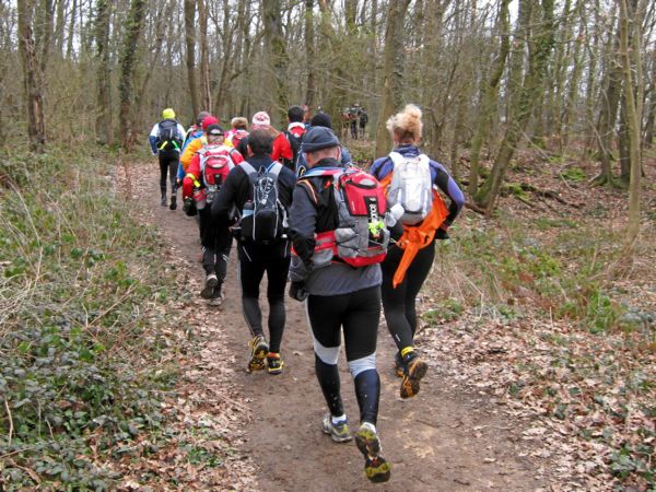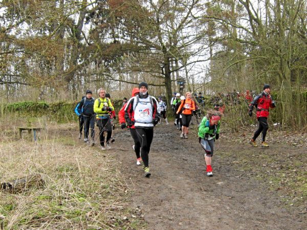Ab jetzt lief man im Wald, meist auf schmalen Pfaden. Der Schnee der vergangenen Tage war zwar weitgehend verschwunden, hatte aber die Wege aufgeweicht. Zum Glück konnte man den ganz schlammigen Stellen ausweichen und kam trotzdem ganz ordentlich voran.