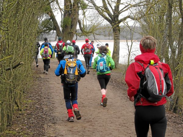 Drei Minuten später aber waren auch diese 10 Meter geschafft, das Feld hatte sich dabei „sortiert“ und dem ungebremsten Laufen stand jetzt nichts mehr im Weg. Wir schlängelten uns am Ufer des Sees entlang, freuten uns, dass es jetzt gut lief, dass es nicht regnete und ich erinnerte mich, wie sonnig und lau es vergangenes Jahr war und an der ersten kurzen Steigung, wie ich damals trotz kurzer Laufkleidung schwitzen musste. Eigentlich war das Wetter dieses Mal doch gar nicht so schlecht!