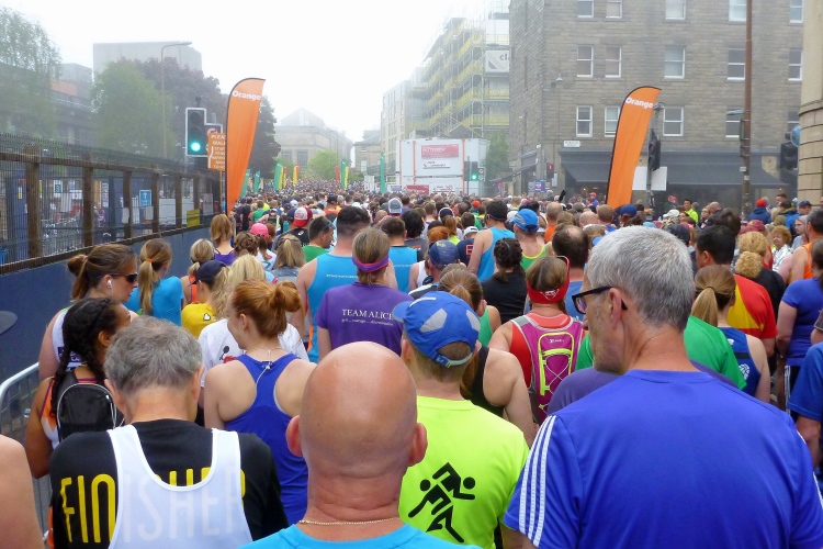 Am Samstag, dem Vortag des Marathons, steht u.a. zunächst der Zehner an, an dem sich meine bekanntermaßen deutlich bessere Hälfte erfolgreich versucht. Beim Lauf rund um den Hausberg Arthurs' Seat gibt’s eitel Grund zur Freude, denn mehrere hundert Läufer gelingt es ihr gnadenlos zu versägen. Neben div. Kinderläufen locken noch ein Fünfer, und morgen ein Halbmarathon sowie eine Marathonstaffel zu viert. Am Sonntag wird es wieder mal ernst: It’s Marathon time! Mir gefällt die heutige Aufgabe beim nach London (allerdings mit großem Abstand) teilnehmerstärksten Lauf über 42,195 km in Großbritannien. Sind die ersten drei Meilen noch im Städtischen zu nehmen, haben wir nach zwei weiteren die See erreicht, die wir auf dem restlichen Weg grundsätzlich nicht mehr verlassen werden. Nach zwölf weiteren Meilen und einer kleinen Schleife geht es auf dem gleichen Weg zurück, bis im Städtchen Musselburgh das Ziel erreicht ist. Mit dem Bus wird man uns dann an den Start zurückbringen.