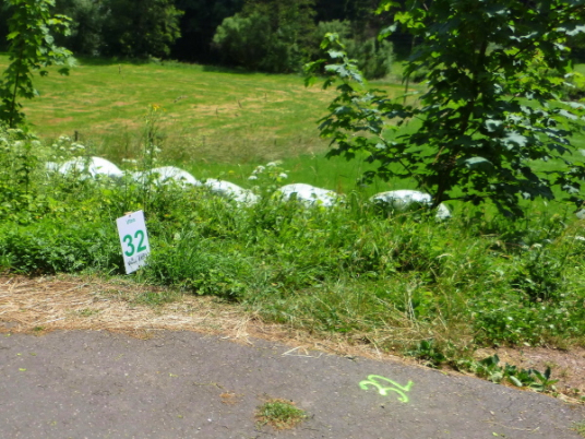 Jetzt wir es nett. Die Halbmarathonis kommen von vorn. Ich feuere sie an; viele von ihnen antworten oder klatschen ab. An der VP versuche ich, keinem im Weg zu stehen, denn ich habe ja mehr Zeit als sie. Nach den schnellen Hirschen kommt das Feld der Langsameren, die hier ihren Spaß haben wollen. Jeder lacht und hat ein gutes Wort. Dann werden es weniger und schließlich bin ich wieder allein auf der Strecke. Da kommt das Besenfahrrad mit dem Letzten. Ich feuere ihn an: „auch Du wirst das Ziel erreichen“. Dann fällt mir auf, dass er ziemlich schnell unterwegs war. Als dann die Nächsten kommen, wird mir klar, dass das bereits der führende Marathoni war. Peinlich, peinlich.