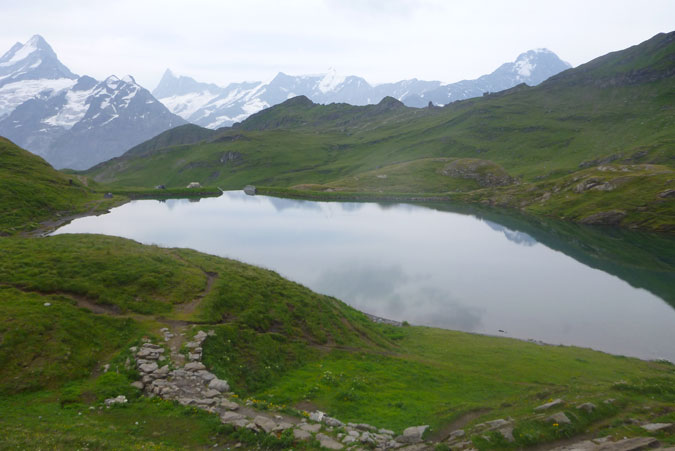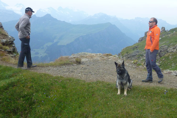 Halb dürfen wir den malerischen See umrunden, anschließend müssen wir wieder kraxeln. An einem Grat geht es aufwärts Richtung Rötihorn oder Reeti, wie er auch genannt wird, mit traumhafter Aussicht auf die Jungfrau, die mit 4158 m der dritthöchste Berg der Berner Alpen ist und mit Eiger und Mönch die weltberühmte Dreiergruppe bildet. Der Name Jungfrau basiert im Übrigen nicht auf irgendwelche Männerphantasien. Augustinerinnen besaßen bereits im 15. Jahrhundert an den Nordwesthängen der Jungfrau eigene Alpen. So hießen sie beim Volk nur Jungfrauenberge. Die Bezeichnung hat sich im Laufe der Zeit bis hin zum höchsten Gipfel des Massivs eingebürgert und ist so geblieben ist.