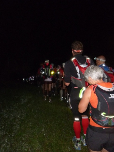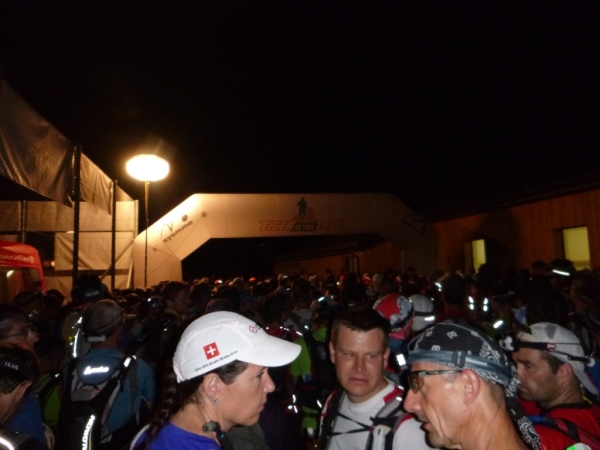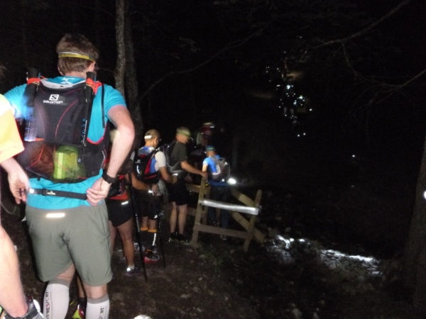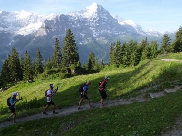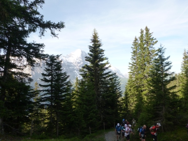 Ganz allmählich konnte man im Morgengrauen die Umrisse von Schreckhorn und Wetterhorn erkennen, die sich rechts von uns auftürmten. Wenn wir zurückblicken, war auch schon die Gegenseite mit Eiger, Lauberhorn und Männlichen zu erkennen. Auf diesem Streckenabschnitt gab es immer wieder Engpässe, an denen sich die Läuferschlange staute und geduldig warten musste, bis sich der Vordermann oder –frau weiter ging.