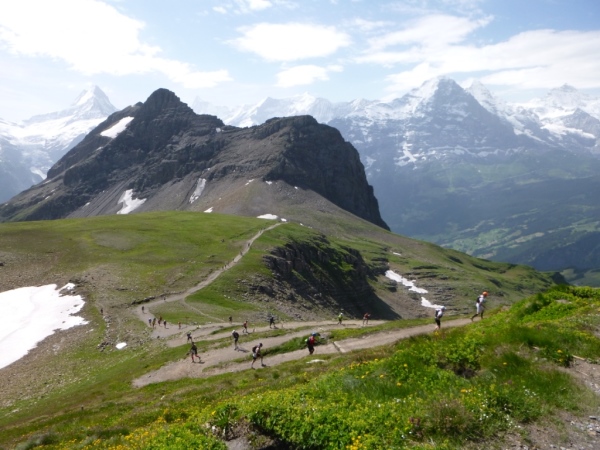 Die Königsstrecke, E101 genannt, war der Ultratrail über etwa 101 Kilometer und 6700 m Höhenunterschied. Bereits um 4:30 Uhr machten sich die E101-Läufer auf den Weg, um in maximal 28 Stunden diese Strecke zu bewältigen. Der E51 wurde vom Veranstalter als Panoramatrail tituliert und maß 51 Kilometer und 3100 Höhenmeter. Dieser Trail startete um 7 Uhr und die Läufer mussten bis spätestens 21 Uhr wieder in Grindelwald sein (14 Stunden Zeitlimit). Zu guter Letzt gab es noch den Genusstrail über 16 Kilometern und 960 Höhenmeter, die kleine Runde unterhalb von First. Auch hier die Laufzeit limitiert auf 4 Stunden, der Start um 10 Uhr. Alle drei Trails hatten Start und Ziel in Grindelwald.