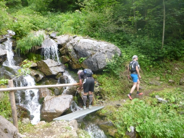 Für die E101- Ultraläufer hieß es: „Der frühe Vogel fängt den Wurm“. Sie waren bereits zweieinhalb Stunden unterwegs, bevor sich die E51-Läufer auf den Weg machten. Noch war es dunkle Nacht, im Startbereich wurden die Stirnlampen angeknipst, um damit später den Weg auszuleuchten. Bei angenehmen Temperaturen begann der erste Anstieg über 7,7 km auf die Große Scheidegg (VP/1959 m/Zeitlimit 7:00 Uhr). Zuerst auf breiteren Schotterwegen zog sich der Lichterwurm so allmählich den Berg hinauf. Der Wanderweg führte meist entlang der tosenden Schwarzen Lütschine, die vom Oberen Grindelwaldgletscher gespeist wird.