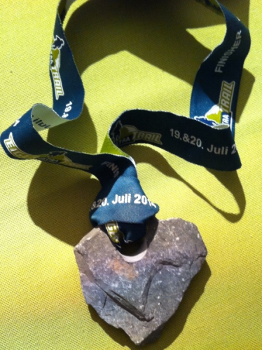 Endlich geschafft, total kaputt, aber überglücklich. Zum Abschlusswurde uns ein Eigerstein umgehängt und das Finisher-Shirt überreicht. Wir waren bereits kurz nach 2 Uhr im Ziel, Zielschluss war um 8:30 Uhr.