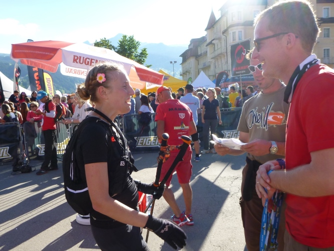Ich gehe dann noch meiner Reportertätigkeit nach und stelle fest, dass alle Finisher glücklich sind. Als wir später in einer Pizzeria einkehren, kommen immer vereinzelte UltraTrailer die Endgasse hoch zu ihrem Finish. Das wird sich bis zum frühen Morgen hinziehen.