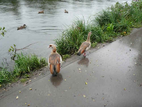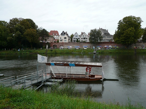 Nach ca. 1km erreichen wir die Thalfinger Uferstraße direkt neben der Donau. Beim Blick zur Donau entdecke ich eine Ulmer Schachtel. Das sind nicht Damen älteren Semesters, sondern Einweg-Boote, die seit dem Mittelalter Waren- und Passagiere flussabwärts beförderten. Der Name Ulmer Schachtel war ein Spottname für die Wiener Zillen, die im Donauraum Arbeitsschiffe waren. Auch die Württemberger waren vom Neckar elegantere Schiffe gewohnt. Heute sehen die ehemaligen Ulmer Schachteln doch anders aus. Bei schönem Wetter pendeln sie auf der Donau und unterhalten die Läufer mit zünftiger Blasmusik. Heute, wo es nur am Regnen ist, stehen sich verlassen am Ufer.