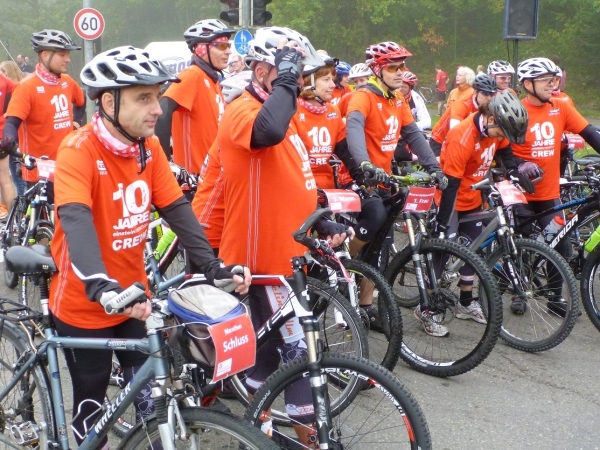 Schließlich werden die Handbiker und Inliner mit einer gut 30minütigen Verspätung ins Rennen geschickt. Und wir werden bis zur Startlinie vorgelassen. Alles wartet auch das Kommando. Dann dürfen wir nochmals einige Minuten warten. Hunderte Männer erleichtern sich für ein kleines Geschäft an einer Hecke. Die Meute, die nicht muss, lacht.