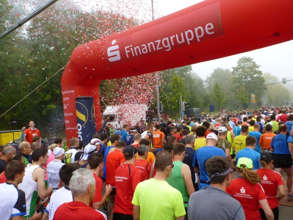 Mit einer 37minütigen Verspätung lässt man uns mit einem Knall aus der Startpistole und unter Konfettiregen auf die Strecke. Ich bleibe noch drei, vier Minuten an der Seite stehen, versuche noch den einen oder anderen Schnappschuss zu erhaschen und mache mich dann im Umfeld des 3.45er Pacers auch auf den Weg.