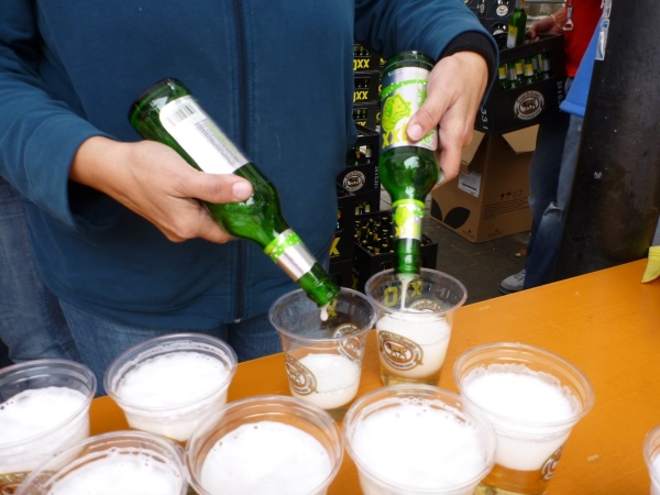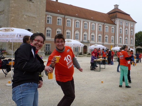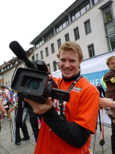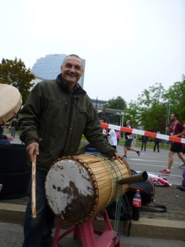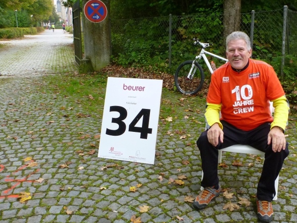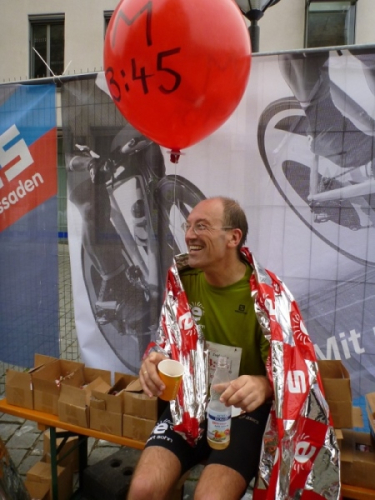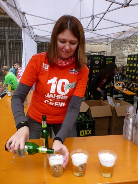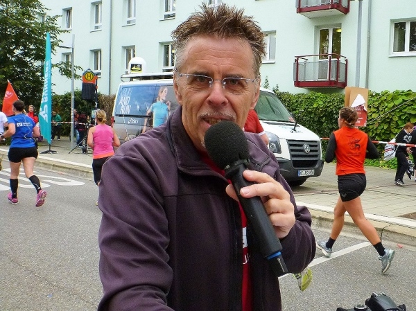 Ich fotografiere eine Weile und werde zweimal von einer Securitykraft gebeten, Platz zu machen. Der hat mit dem Laufen wohl wenig zu tun. DieVersorgungsstraße ist reich bestückt, so sagt man. Auch die Ausgabestelle für Freibierletschen wie mich. Zusammen mit zwei fränkischen Freunden sitze ich auf der Bank beim Hopfengenuss, bis ein total verschwitzter Kerl uns vor die Linse nimmt. Und dann sagt der Michael: „Schau mal, das ist ja einer von euch!“ Ja, es ist der Günter Schmidt, der meist den Ostteil unserer Republik abklappert. Damit hat er meinen Titel als Ostbeauftragter übernommen.