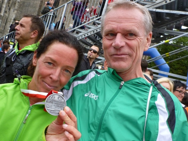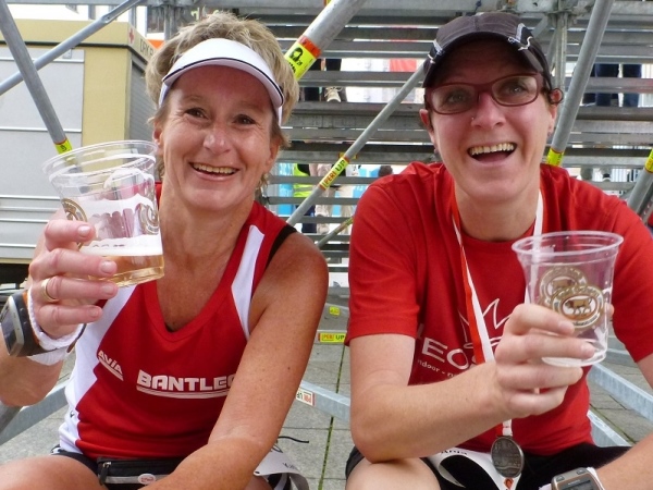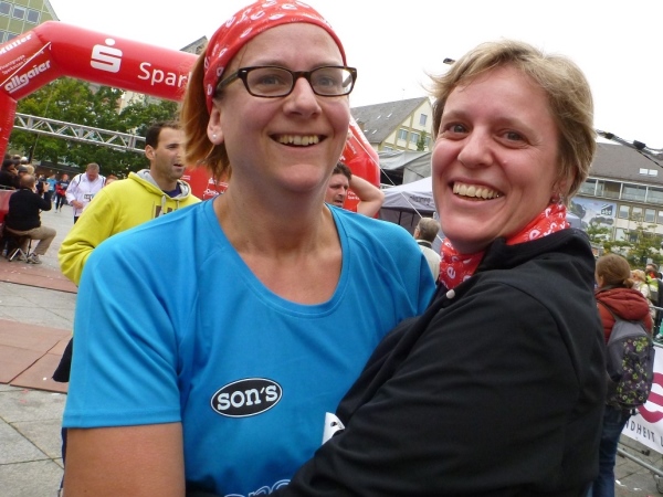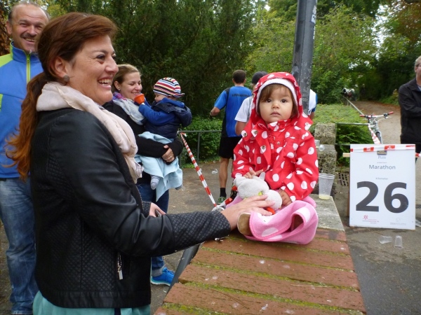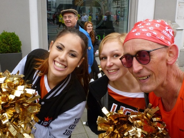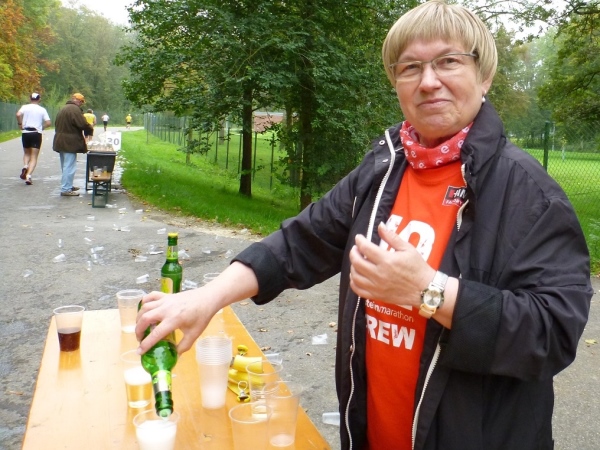 „Grüß Dich Anton“, höre ich dann vom Vanman Jochen Heringhaus übers Mikro und der schiebt gleich noch Infos über unser Portal nach. Durch den Zeitverlust ob meiner Arbeit werde ich von einer Pacerin überholt. 1.55 Stunden zeigt ihr Ballon an. An der Tankstelle vorher gibt es bereits das volle Programm mit Wasser, Iso, Obst und später auch noch mit Cola, Riegel und Bier.