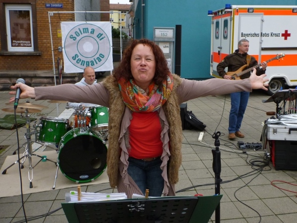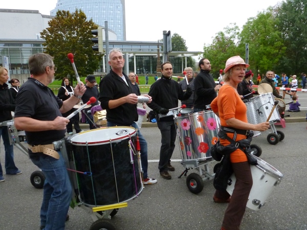 Nur wenige Schritte davon sehen wir den im Jahr 1360 erbauten Gänsturm. Damals wurden die städtischen Gänse zum Grasen auf die Wiesen vor der Stadt getrieben. Unser weiterer Weg führt dann durch Ulms Neue Mitte, wo uns dann die Sambaband Beo Beo die Rhythmen Brasiliens nahe bringt. Die drei angekündigten Tänzerinnen habe ich nicht gesehen, war es denen zu kalt?