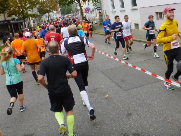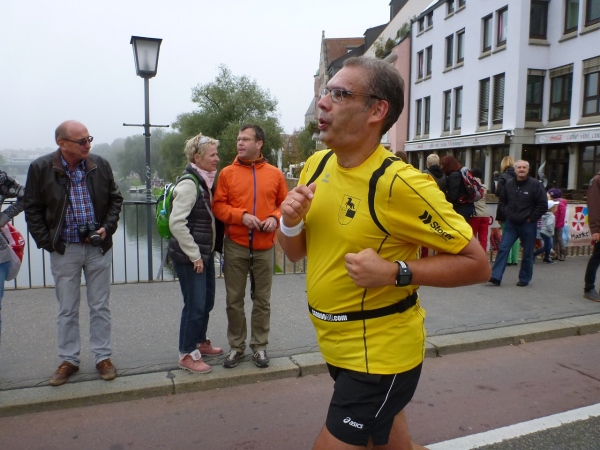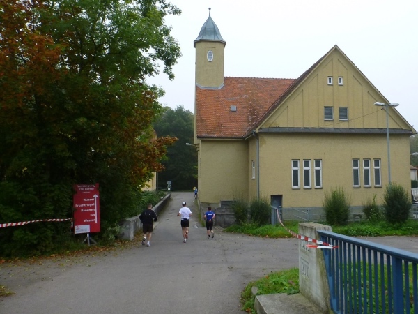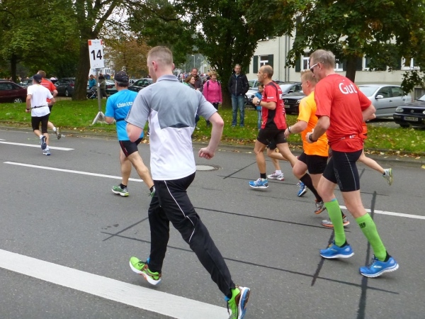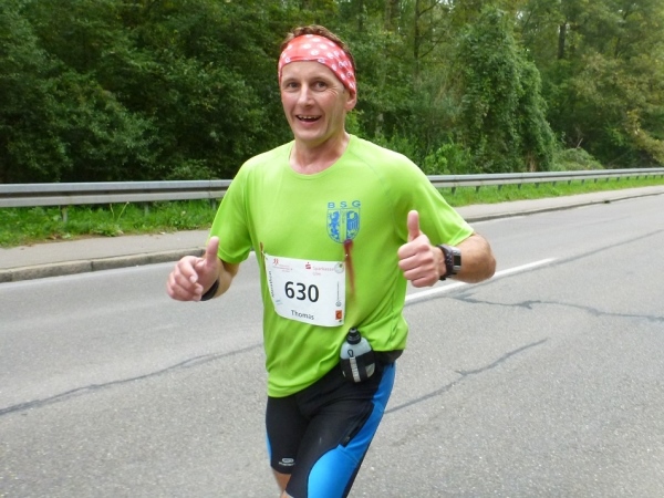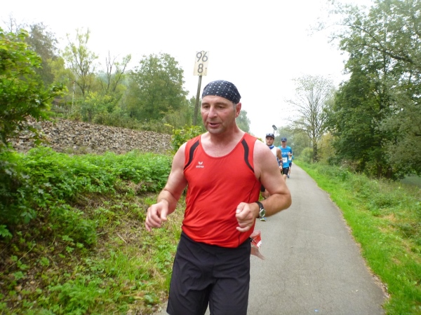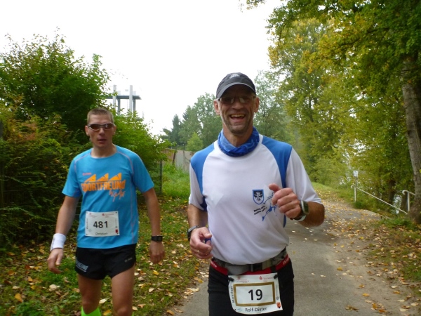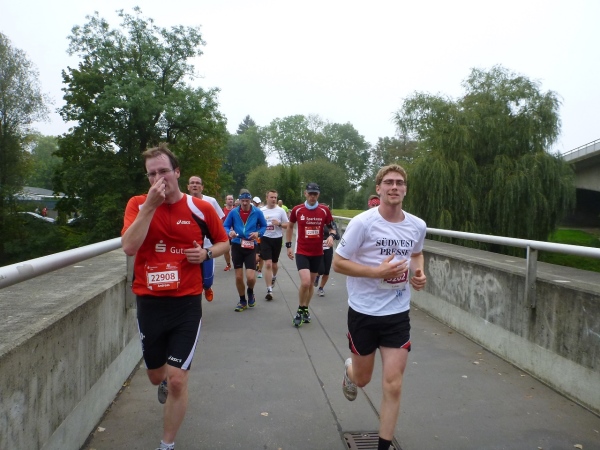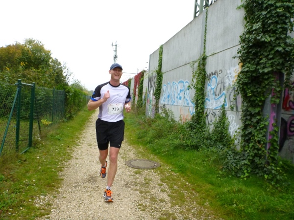 Unser Laufkollege und Reporter Andreas berichtet mir später über Mail, dass ich ihn in diesem Bereich überholt haben muss. Und keiner hat's bemerkt. Entweder ist es der mittlerweile gestiegenen Laufgeschwindigkeit geschuldet, ich gebe jetzt Gas wie eine Wildsau, oder der Andreas hat eine Pause in einer Wirtschaft eingelegt. Hättest du mir den Fuß gelegt, hätten wir einen kurzen Ratsch gehalten.
