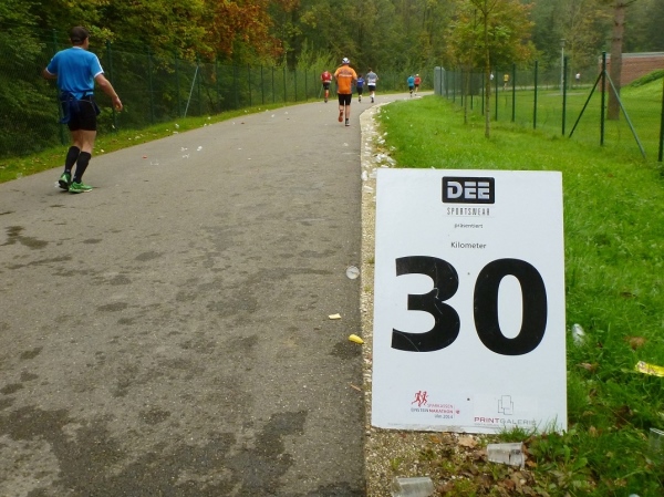 Kurz nach dem 21. Kilometer wird die Zeit genommen, einer im Feld redet etwas von 1.56 Stunden. Ich rechne kurz und denke, dass es heute mit einer 3.45 eng werden kann. Aber probieren will es schon noch, denn viele Fotomotive gibt es nicht mehr zu sammeln. Der Bayer sagt „a gmahde Wiesn“, was bedeutet, die meiste Arbeit ist getan.