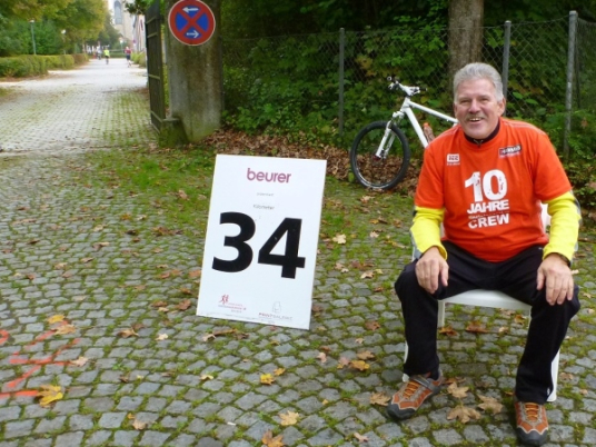 Kilometer 34, vor dem Klostereingang sitzt einer der unzähligen Helfer. Stellvertretend für alle richte ich meinen und unseren Dank aus, dafür, dass er und seine Freunde den heutigen Sonntag für die ehrenamtliche Tätigkeit geopfert haben.