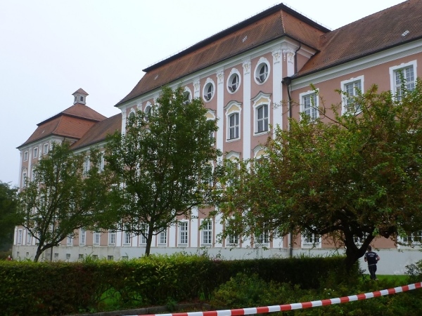 Wir umlaufen den Klosterbau und biegen dann durch ein Tor auf den Klosterhof ein. Die im Jahr 1093 gegründete ehemalige Benediktinerabtei bestand bis 1806 und gehörte am Ende zum österreichischen Haus. Herzog Heinrich nutze es fortan als Residenz. Den Wiblingern wurde es verboten, den Bau als „Kloster“ zu bezeichnen, „Schloss“ war die richtige Bezeichnung. Noch heute verläuft deswegen an Kloster eine Schlossstraße. Im 19. Jahrhundert wurde die Anlage Teil der Bundesfestung Ulm und daher immer wieder als Kaserne benutzt.