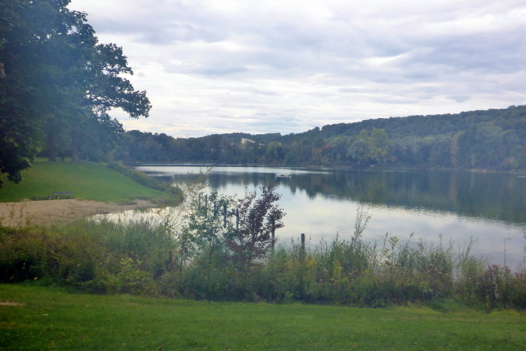 Das Läuferfeld um mich herum ist sehr übersichtlich. Hinter und vor mir kann ich nur wenige Läufer erkennen, aber ich genieße die Ruhe und trabe vor mich hin. Etwa bei Kilometer 27 kommt dann das, was ich von Beginn an versucht habe zu ignorieren. Mein Rücken, der zwischendurch immer mal zickt und seit gut einer Woche erneut Probleme macht, meldet sich zurück. Ich laufe weiter und hoffe, dass das Gefühl vergeht. Am Pfuhler Badesee, den wir nur auf der zweiten Runde umrunden, ist es dann aber soweit. Ich nehme mir eine Bank und versuche den Rücken etwas zu entspannen. Mir ist klar, dass der weitere Lauf kein Zuckerschlecken mehr wird, aber ich will den Einstein Marathon zu Ende bringen.