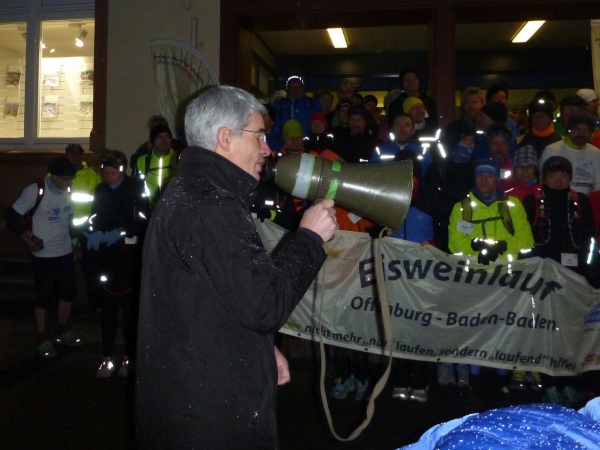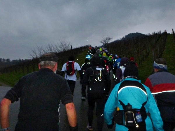 Ein besonderes Highlight im Kalender von laufendhelfend.de ist der Eisweinlauf Mitte Dezember. Gestartet wird in Offenburg, Ziel ist der Weihnachtsmarkt von Baden-Baden. In 6 Etappen sind hier an einem Tag ca. 65 km zu bewältigen. Es wird gemeinsamen gelaufen und wer sich die gesamte Distanz nicht zutraut, kann an festgelegten Stellen einsteigen. Steigungen werden konsequent gegangen.