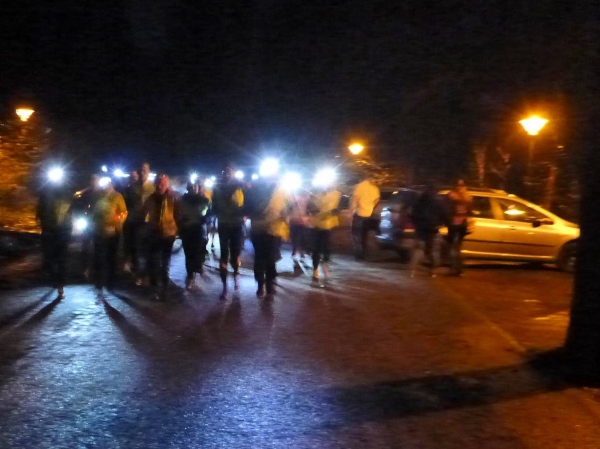 Und dann ist es so weit. Rolf sieht sie zuerst. Anfangs nur schemenhaft, dann immer größer wird das Licht aus dem dunklen Wald. Im Näherkommen löst es sich in hunderte von kleinen Lichtern auf. Leider kann ich mit meinem kleinen Fotoapparat dieses unglaubliche Bild nicht festzuhalten.