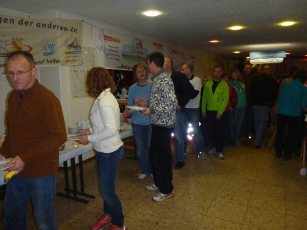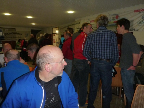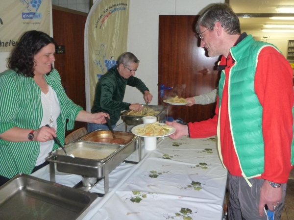 In der Tullahalle gibt es nach der wohlverdienten Dusche Nudeln satt für alle und dann noch Kaffee und Kuchen. Jeder bekommt noch ein Fläschchen Durbacher Rotwein, dann machen Norbert und ich uns auf den Heimweg. Auf die Übernachtung müssen wir wieder verzichten.