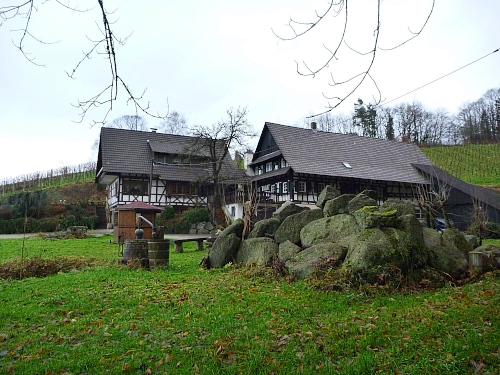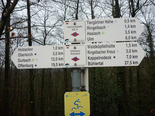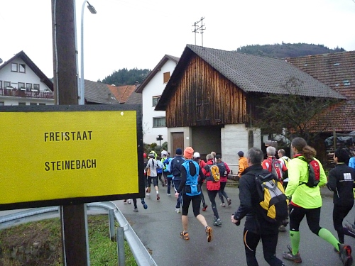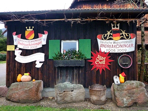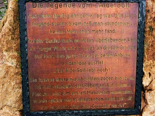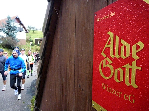 Beim dritten VP in Sasbachwalden stossen die meisten der restlichen Etappenläufer zu uns, nun sind wir fast 200, viele Laufangehörige um uns rum. Meine Nahrungsaufnahme ist nun optimiert. Los gehts, vorbei am berühmten Bildstock, dazu die Legende vom „Alde Gott“, siehe Foto. Der Gault Millau Wein Guide 2011 wählte die Alde Gott Winzer eG zum wiederholten Mal in den Kreis der besten Weingüter Deutschlands.