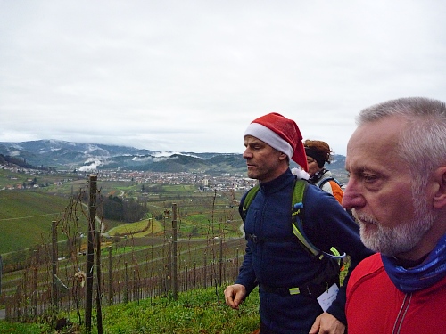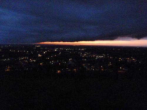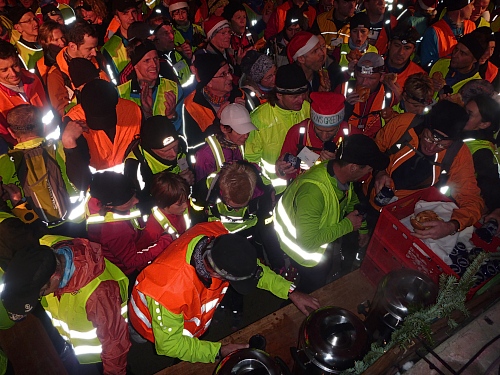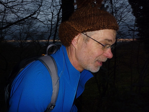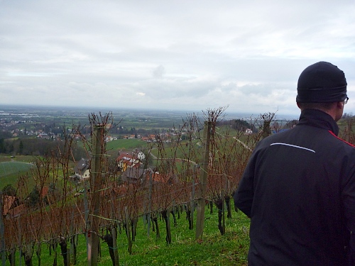 Ganz, ganz tolle Weihnachtsstimmung, als wir Richtung Westen in die Rheinebene schauen. Der Himmel in der Ferne leuchtet, als ob die Engelein Plätzchen backen. Plötzlich wird es still und wir stehen mit offenem Mund da. Auffallend, dass dieses Licht den Harndrang wieder erhöht. Hauptsache, es wird gelacht.