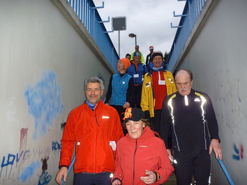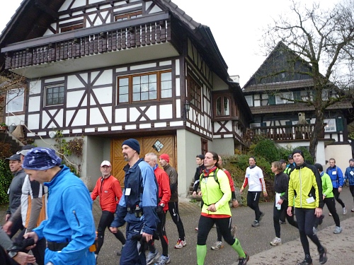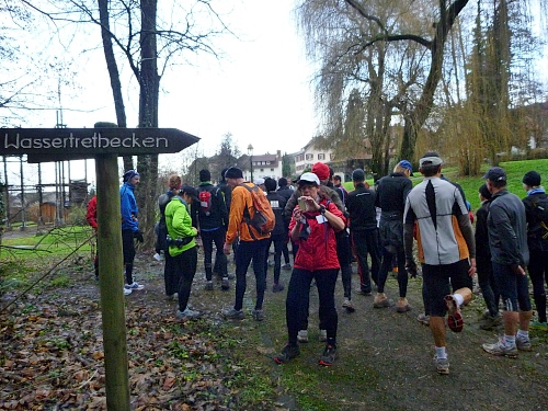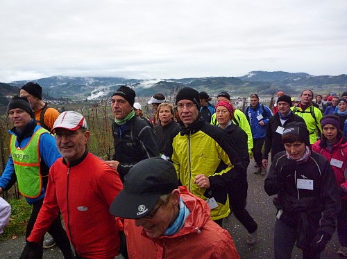Jetzt fühle ich mich frisch, laufe mit meiner Sondergenehmigung weit vor an die Spitze und zurück, hin und her, schwätze mit diesem und jenem. Ein großer Vorteil eines Gruppenlaufes.
