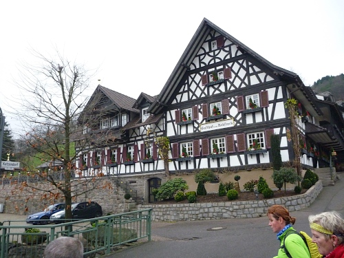 Der nächste Weinort ist Kappelrodeck. Unter dem Schloß Rodeck aus den 11. Jahrh., das sein Aussehen aber dem Jahr 1879 verdankt, warten wir, bis Alfons und Rolf die Landstrasse abgesperrt haben.