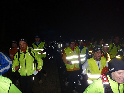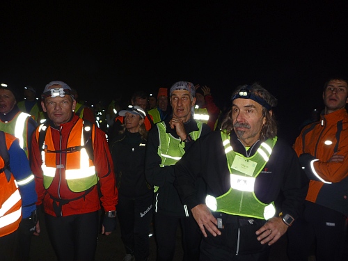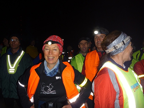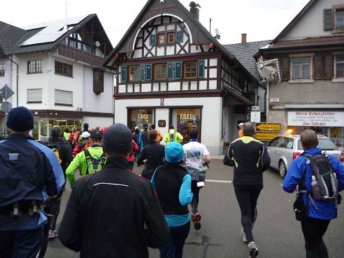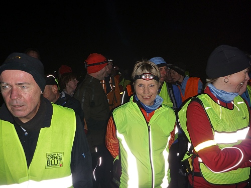 Wir kommen nach Baden-Baden. Boxenstopp, Stirnlampen hocken kreisbildend in den Büschen. In dem Durcheinander sieht niemand mehr wo es langgeht, überall Lampen und Leuchtwesten, großflächige Düngung. Brigitte die Leitkuh hat aber ihre Herde im Griff und weiter geht es.