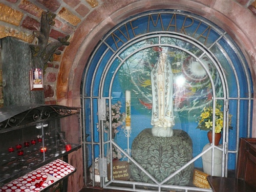 Auf geht’s zur vorletzten Etappe, einen ganzen Marathon haben wir jetzt schon geschafft und ein halber geht immer. Ich weiß, ein für nicht-so-viel-Läufer saudoofer Spruch, aber er stimmt halt, willsemaache. Ein längeres Stück durch den Wald erfordert wieder höggschte Aufmerksamkeit, bevor uns Fàtima zum zweiten Mal beglückt: In Kappelwindeck hat man eine nette Gedenkstätte gebaut, an der aber alle achtlos vorbeilaufen, soweit ich es beobachtet habe. Aber man muß sich nicht wirklich darüber wundern, die km werden länger und länger, da hat man nicht mehr Lust darauf, sich alles anzusehen.