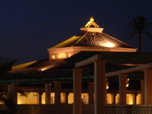 Nun führt die Strecke in den Golfplatz. Rechts ist eine Lagune zu sehen, dahinter viele Villen. Kilometer 6 liegt hinter uns. Der Laufuntergrund ist nicht mehr asphaltiert, sondern aus Erdboden, aber trotzdem gut zu belaufen. Wir rennen am Club Med vorbei. Am Golf Club (Kilometer 7) finden wir abermals Getränke.