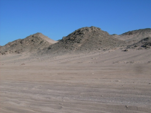 Dann wird es links und rechts der Strecke sandig, sehr sandig. Weiter hinaus auf der „Service Road“ erreiche ich kurz nach Kilometer 3 den Wendepunkt. Abkürzen unmöglich, da hier ein Control Point angebracht ist. Ein Helfer der El Gouna Security bedeutet mir, einen obligatorischen Halbkreis zu laufen. Dafür ist der Zeitnehmer bekannt. Ich habe ihn bei der Tour de Tirol gesehen. Zurück.