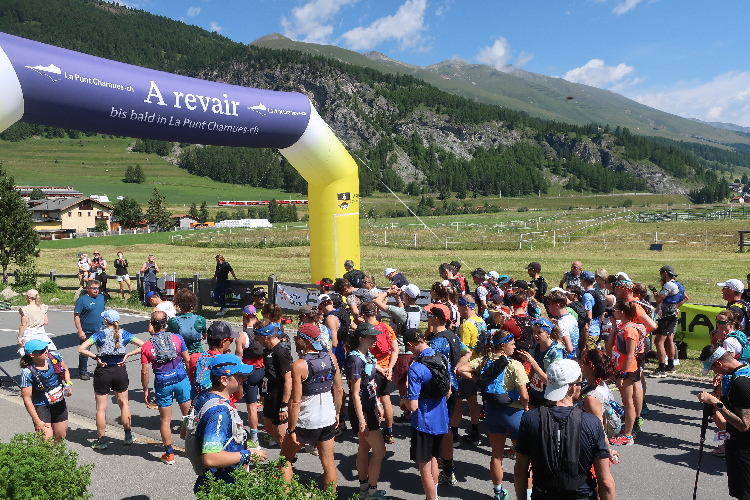 Für mich wird die Wahl hier nicht zur Qual. Denn bei der Frage, welche Distanz auf Basis meiner aktuellen läuferischen Fähigkeiten maximal viel Bergpanorama verspricht, lande ich unweigerlich beim ET23. Und der startet in einem 700 Seelen-Dorf mit dem zumindest für uns gewöhnungsbedürften Namen La Punt Chamues-ch.