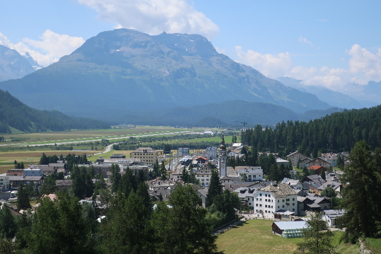Ziemlich schnell und ziemlich ungemütlich wird das Wetter. Weg ist auf einmal die Sonne, kräftig bläst ein kühler Wind und die dunklen Wolkenbänke ballen sich nicht nur über den umliegenden Bergen, sondern auch über Samedan. Froh bin ich, es noch bei guten Bedingungen ins Ziel geschafft zu haben.