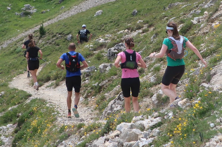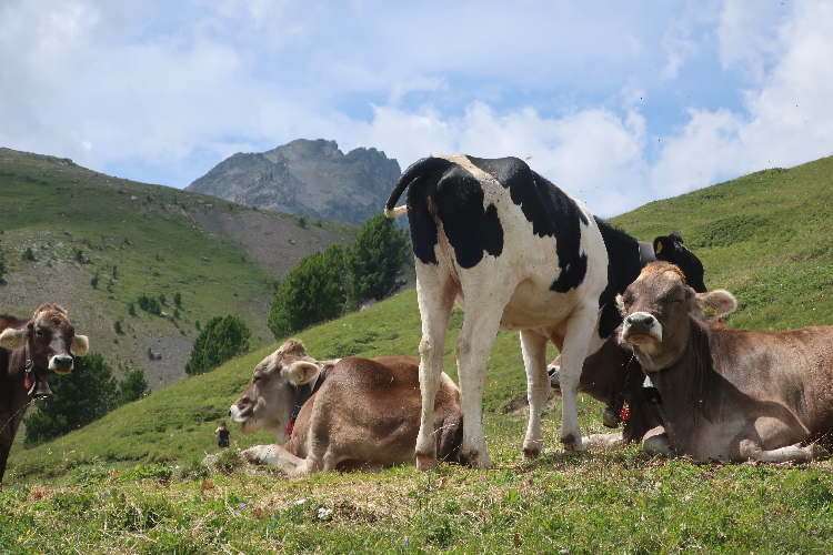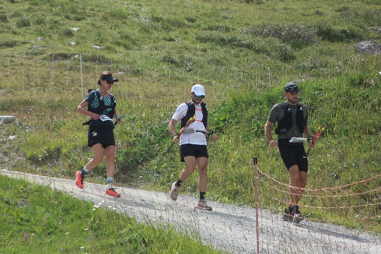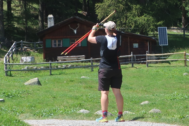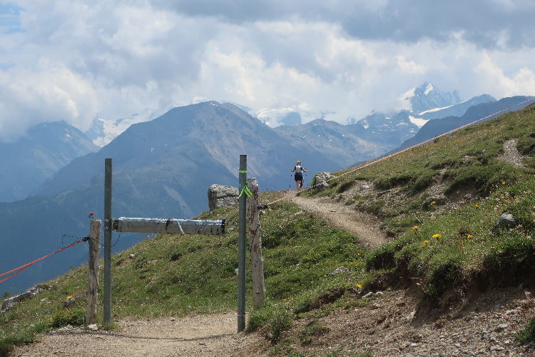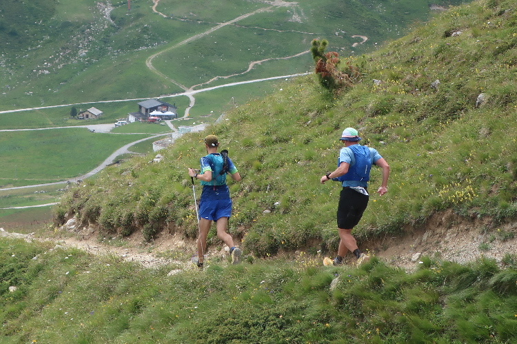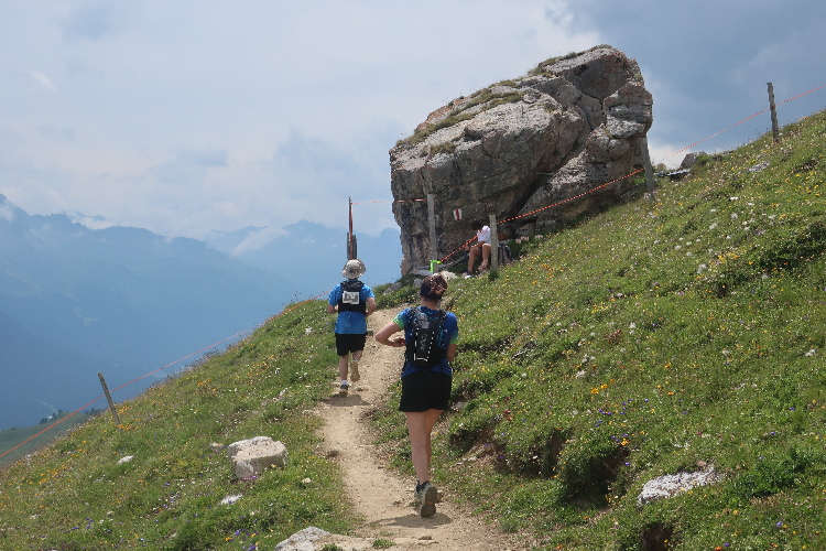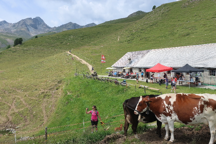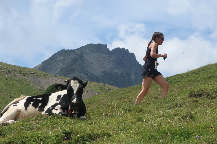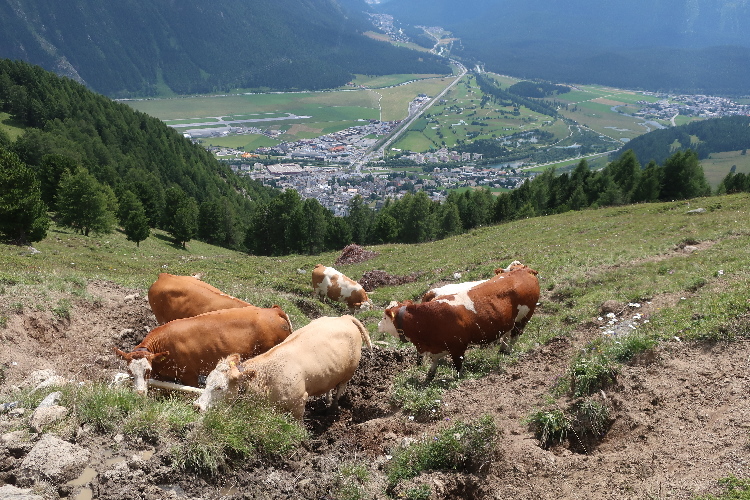 Bevölkert wird das Gebiet des Laufkurses aber nicht nur von Läufern, sondern auch von zahlreichen die steilen Almmatten als Weide nutzenden Kühen. Sie beäugen das Tun der Läufer, soweit sie in ihre Nähe kommen, durchaus interessiert, aber völlig entspannt. So ganz traue ich dem Frieden dennoch nicht und mache im Zweifel einen Ausflug ins Gelände, wenn der Pfad gerade „besetzt“ ist.