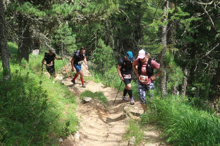Das im Talboden bereits zwischen 1.600 und 1.800 Meter hoch gelegene Oberengadin ist auch Heimat einer weiteren, seit nunmehr fünf Jahren bestehenden Laufveranstaltung: des Engadin Ultra Trails. Vier Distanzen haben die Veranstalter im Angebot. Beim EUT102 über ebenso viele Kilometer sammelt man im Auf und Ab der das Tal umschließenden Berge stolze 5.677 positive Höhenmeter. Knackig ist auch der EUT53 über 53,3 km mit 2.639 Höhenmetern. Gemütlicher wird es beim ET23, der auf 22,5 km lediglich 1.054 Höhenmeter abverlangt. Und der ET16 über 16,3 km mit 791 Höhenmetern ist aufgrund großzügigen Zeitlimits auch für „Wanderer“ geöffnet.