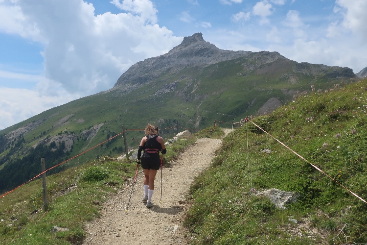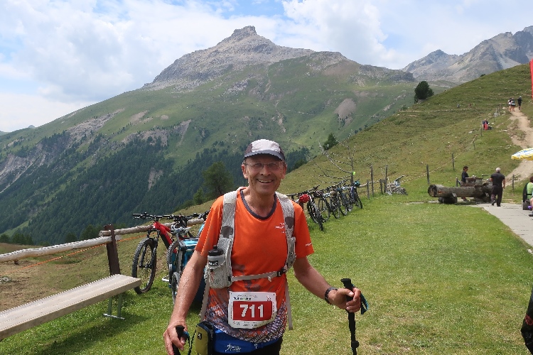 Eine Infotafel an der Verpflegungsstelle in Bever wies schon darauf hin, was uns an Höhenmetern bis zum nächsten Zwischenstopp, der fünf Kilometer entfernten Alp Muntatsch, bevorsteht. Da von den avisierten 580 positiven Höhenmetern läuferisch bis jetzt noch nicht allzu viel „abgearbeitet“ sind, ist klar: Das dicke Ende kommt noch.